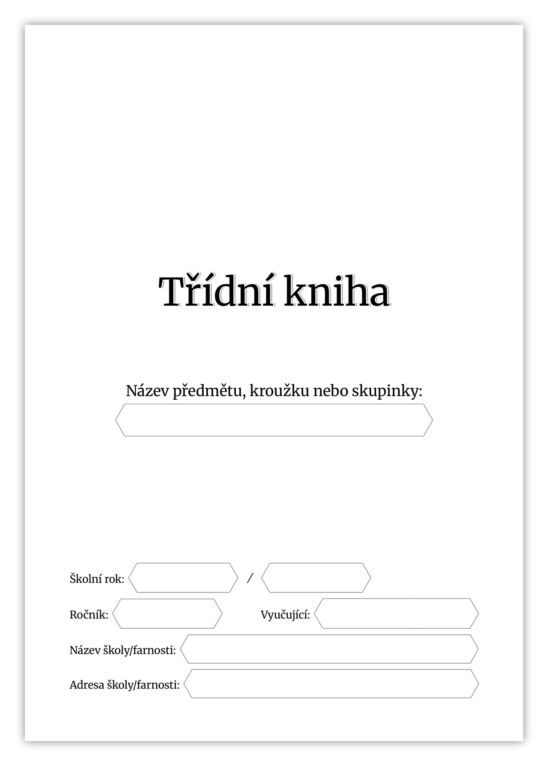 Třídní kniha pro evidenci probraného učiva a docházky (nejen) do hodin náboženství – lze ji využít i pro jiné předměty, kroužky nebo skupinky.